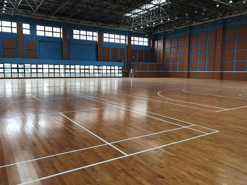 4、有无做好防水措施。体育场木地板怕水浸,水浸之后地板会起泡、脱胶、变形等系列问题,造成无法使用。所以铺装之前需检查防水措施是否做好,场馆内是否有漏水的情况,如有应进行处理后再铺地板。