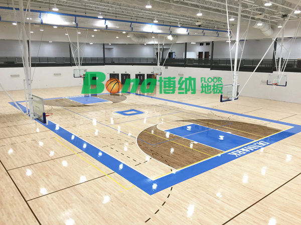 专业运动木地板面板多用硬质枫木板:底层由不同类型的弹结构组成,产品通过标准DIN测试。篮球联盟 FIBA认证。并为NBA篮球协会指定产品,是专业高品质运动木地板,适于用篮球场、排球、手球场及其它用途。 博纳体育运动木地板原料均选用原木成型木材,并经过工厂严格工序,先进的工艺生产而成,开发自然原木的潜在优点,并经过体育总局科研所、体育用品检测中心、体育用品联合会检测认定。其材质多为枫木、榉木和柞木,以其“木质好,抗变型”的特点,被广大用户所接受。为了加强体育地板系统面层品质,博纳体育运动木地板采用水性聚氨脂体育地板漆及其工艺进行表面处理。环保、高耐磨,防止鞋印擦痕,达到欧洲体育地板防滑DIN18032标准。